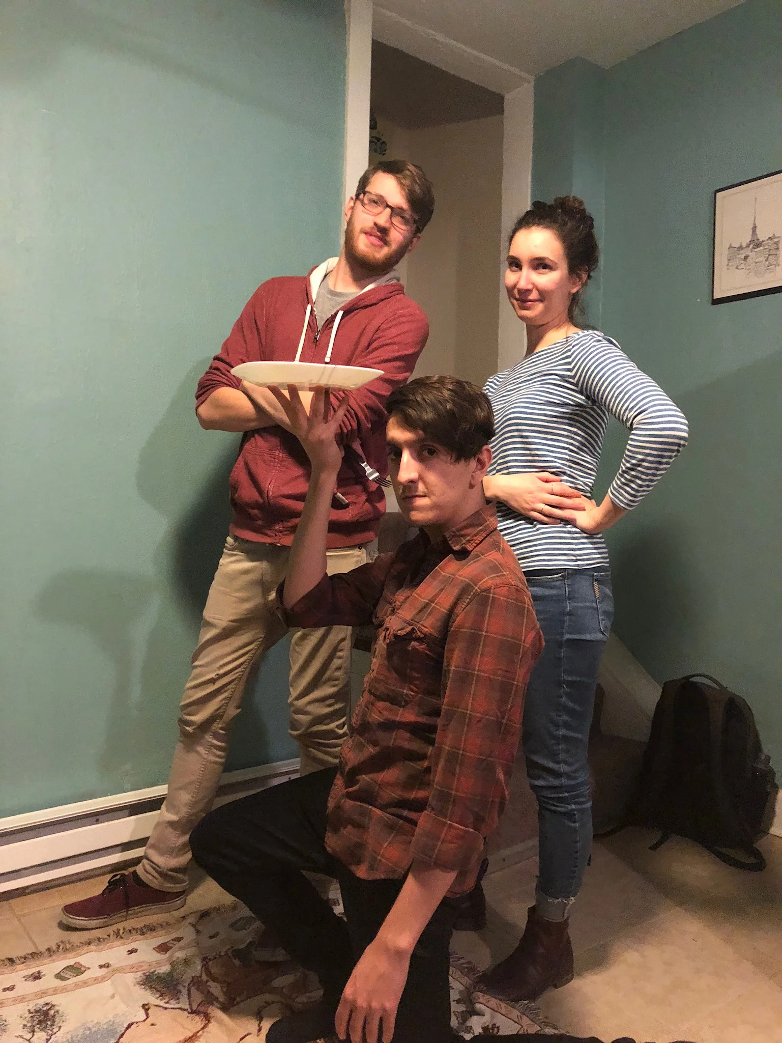We get in, and are careful about where we put our shoes. Aaron gets right to work, and J and I awkwardly settle into our dynamic, which has been out of practice for a year.