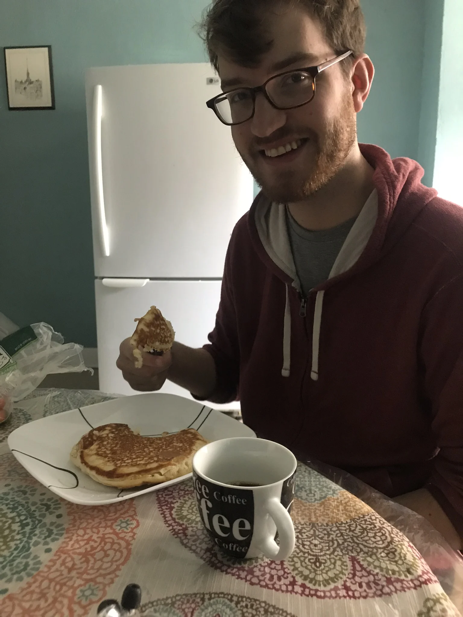 Everyone else wakes up and Gabe makes impromptu pancakes. We have coffee. We debate going somewhere or doing something, but mostly we watch Mark Zuckerberg get interviewed by Congress. Whole thing was kinda dumb. He did good though.
