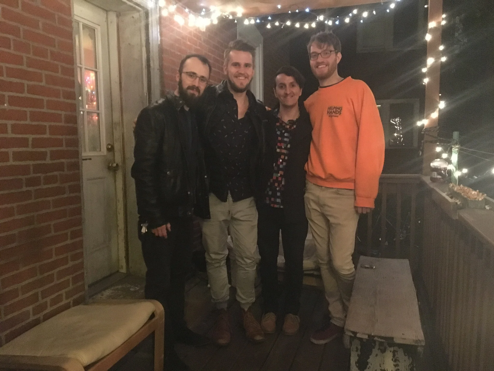 We uber to his nice apartment, along with two other friends of ours, since Luke’s apartment is closer to their train. We all huddle up in Luke’s little room, and laugh and talk about things. We eventually move out to the fire escape, where it’s really bonding.